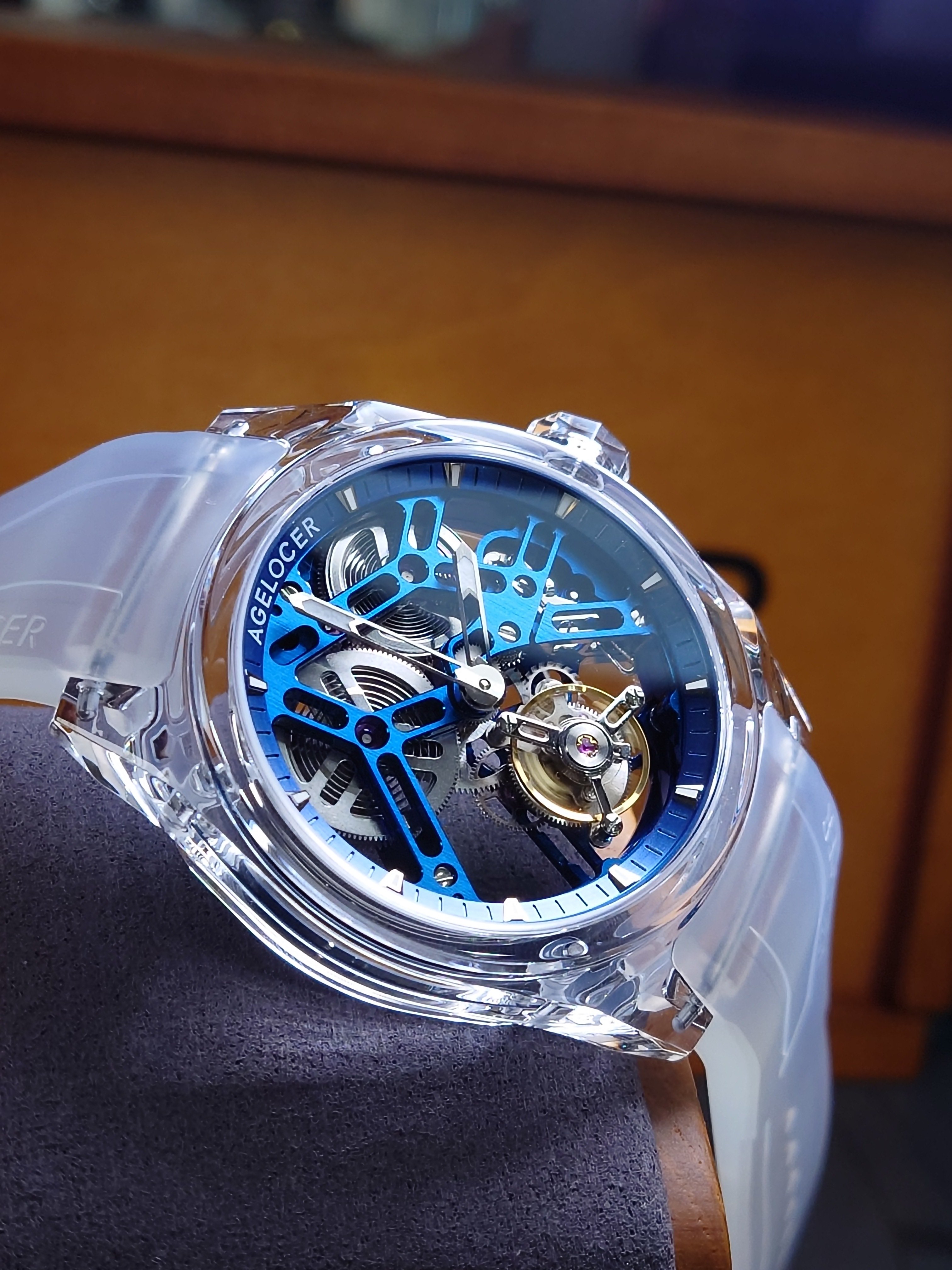 Agelocer 水晶錶殼80小時陀飛輪 - 藍面-AL-9104S11